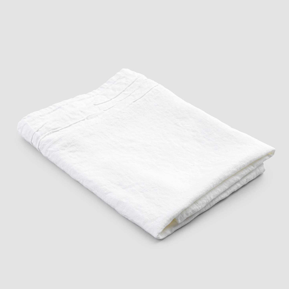 El valor de la tradición se une al estilo de vida moderno con la toalla de baño de lino grueso blanco con un borde de pliegues cosidos.