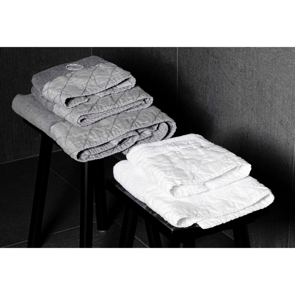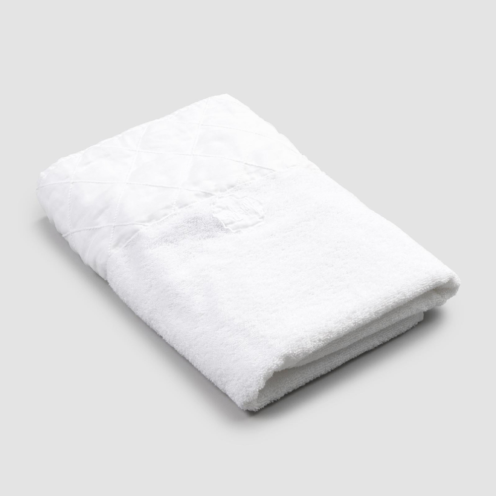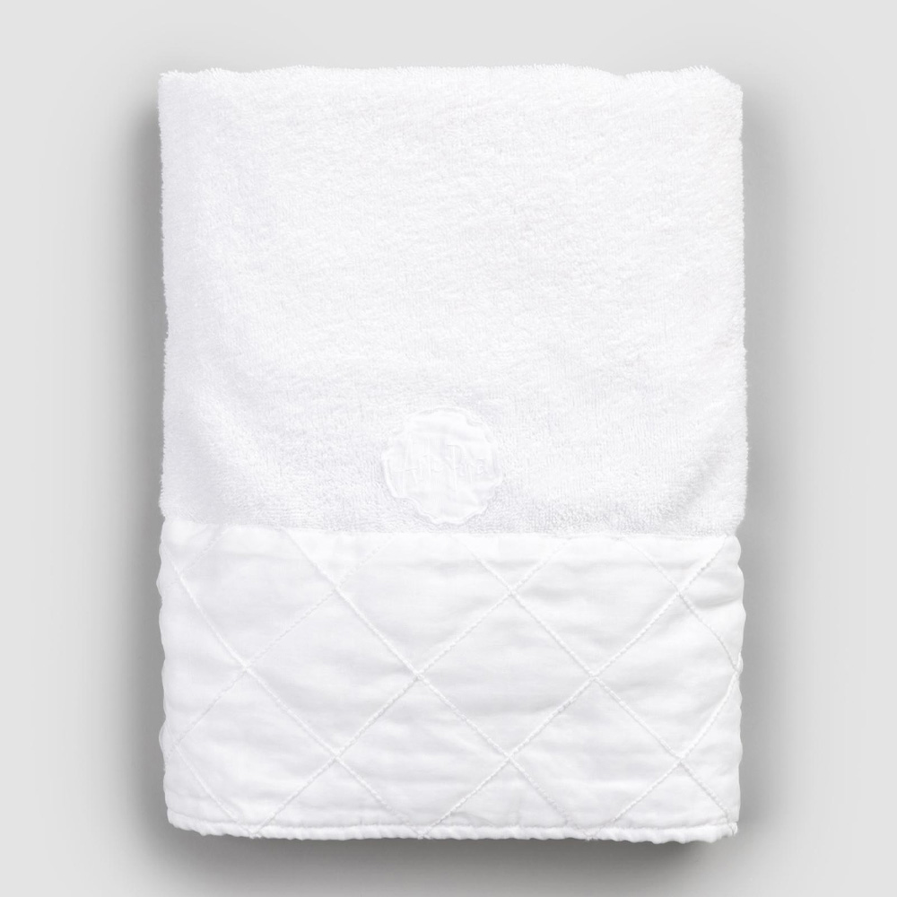 Toalla de rizo de algodón blanco con decoración geométrica de lujo fabricada en Italia.
