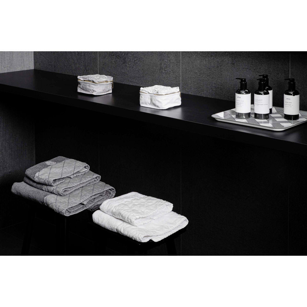 El valor de la tradición se une al estilo de vida moderno con la toalla facial de felpa de algodón blanco con decoración geométrica .