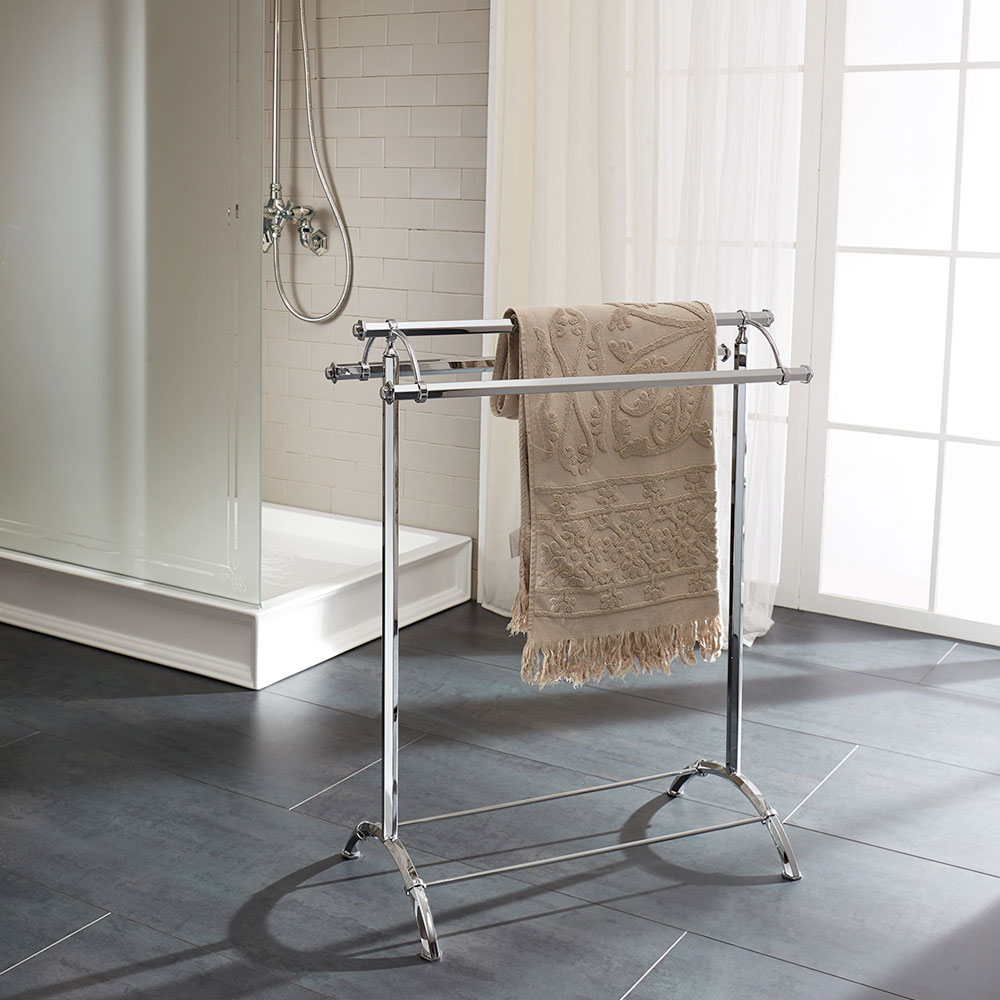 Aristide es un toallero de pie de latón funcional y espacioso.