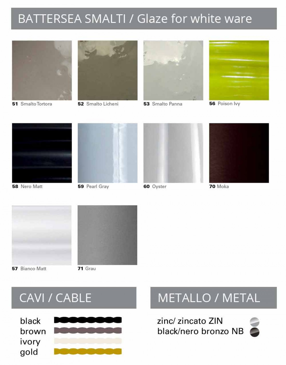 Battersea es un foco de techo elegante y refinado, hecho a mano en cerámica según la verdadera tradición toscana. El original diseño de este foco y sus líneas lo hacen actual y moderno, apto para diversos ambientes. Foco de diseño, que va desde lo retro a lo moderno. Fabricada con materiales de alta calidad, Battersea está disponible en diferentes acabados y garantiza un haz de luz directo. Además de la posibilidad de elegir el acabado exterior de la cerámica, también es posible elegir el acabado del cable eléctrico. ¡Exprese su creatividad eligiendo los acabados que prefiera!