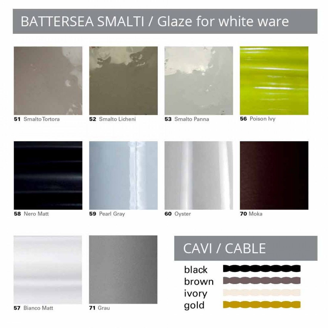 Además de la posibilidad de elegir el acabado exterior de la cerámica, también es posible elegir el acabado del cable eléctrico. ¡Exprese su creatividad eligiendo los acabados que prefiera!
