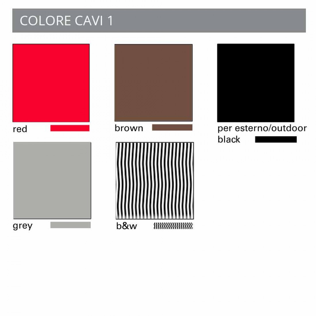 También se pueden elegir los siguientes colores para el cable: rojo, marrón, gris o blanco y negro.