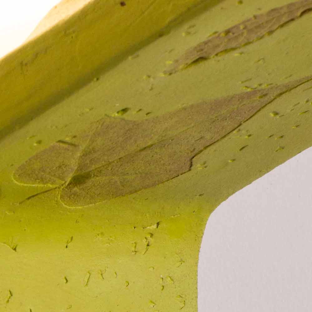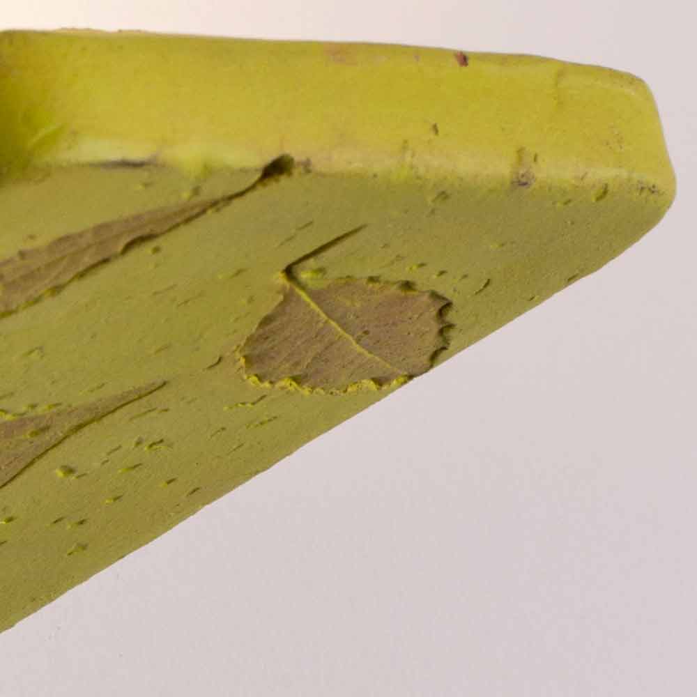 El diseño de esta decoración se produce utilizando hojas reales prensadas a mano directamente en el molde.