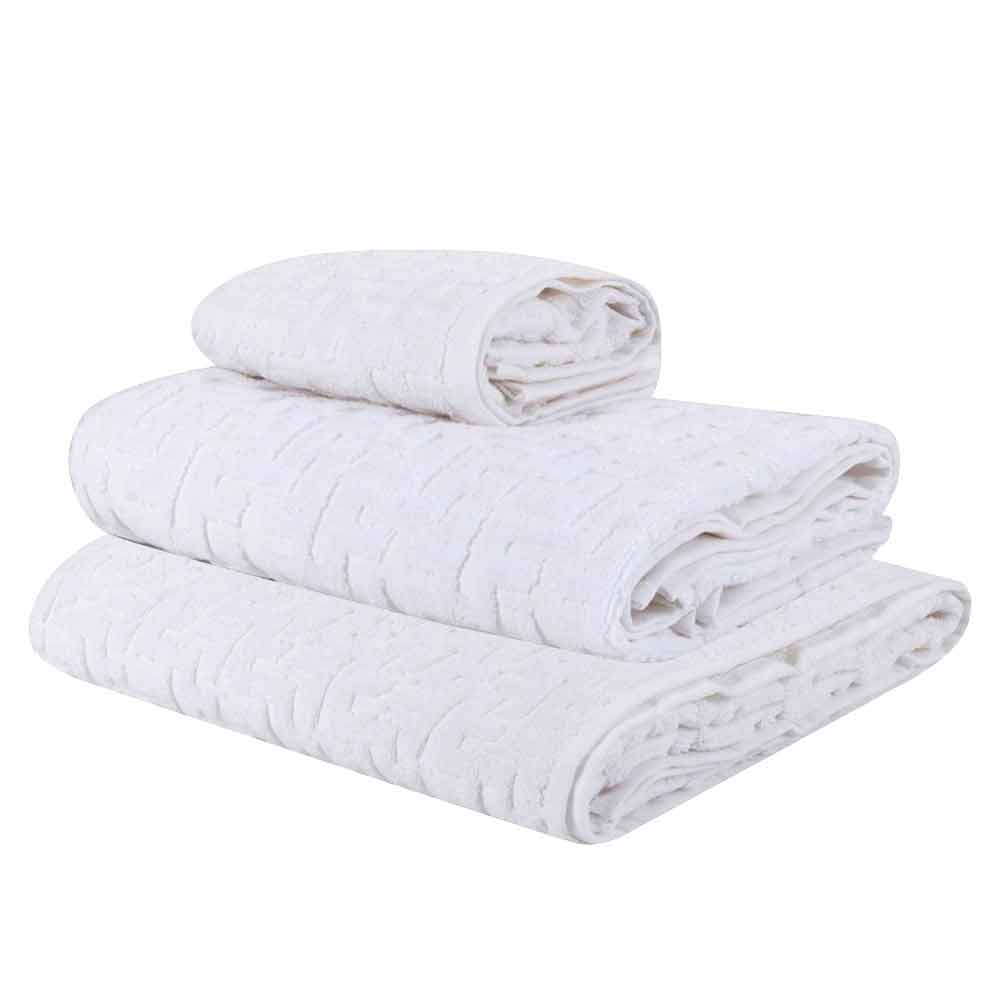 Servicio de toallas en felpa de algodón con diseño en relieve made in Italy, toalla, rostro e invitado.