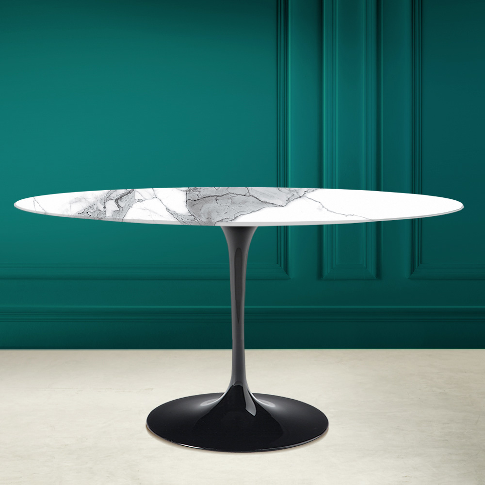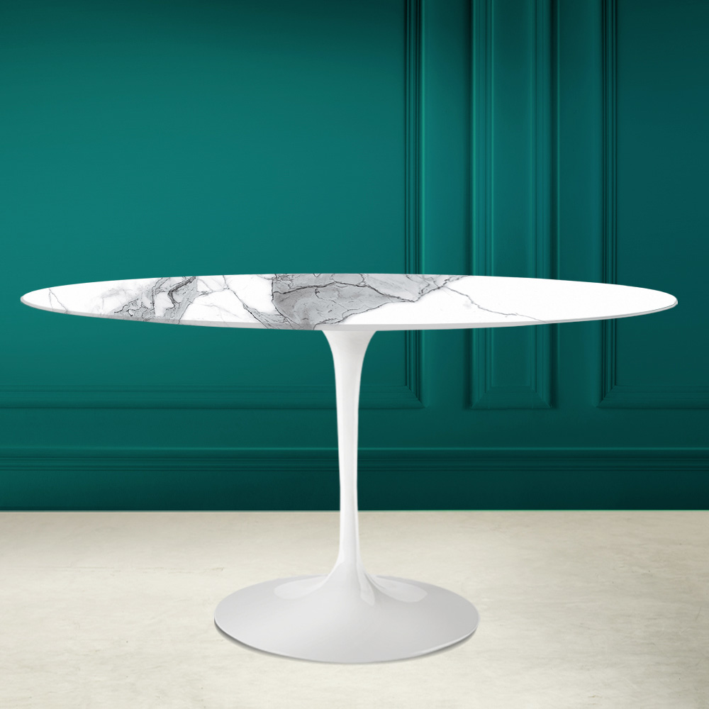 Mesa de comedor con tapa ovalada en cerámica estatuaria altissimo Made in Italy