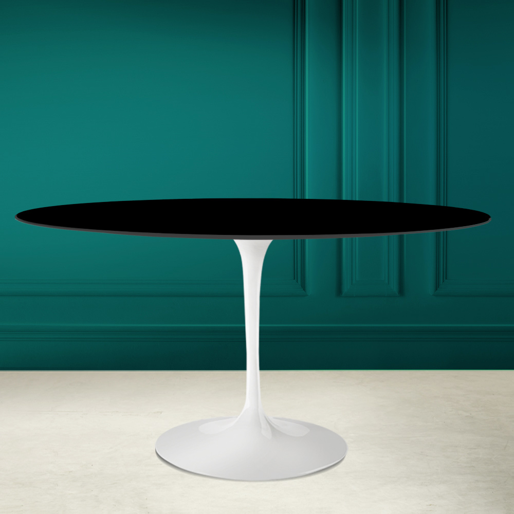 Made in Italy. Esta mesa tiene dos características que la hacen única en su género: la forma ovalada y la cerámica negra absoluta.