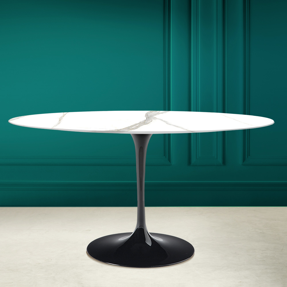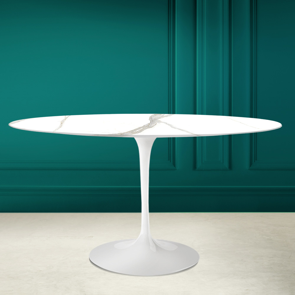 Mesa de comedor con tapa ovalada en cerámica calacatta michelangelo Made in Italy