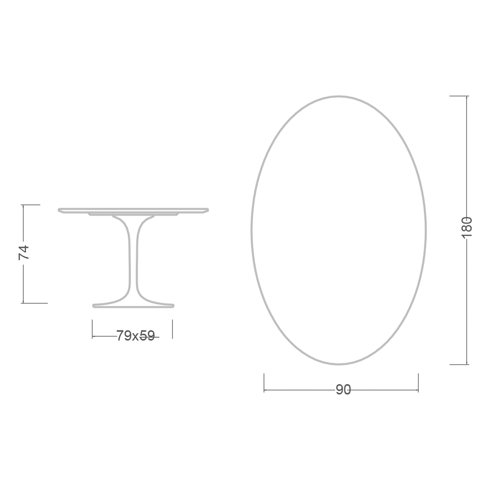 - Tablero de mesa: 180 x 105 / Base ovalada: 79 x 59 cm x H 73 cm