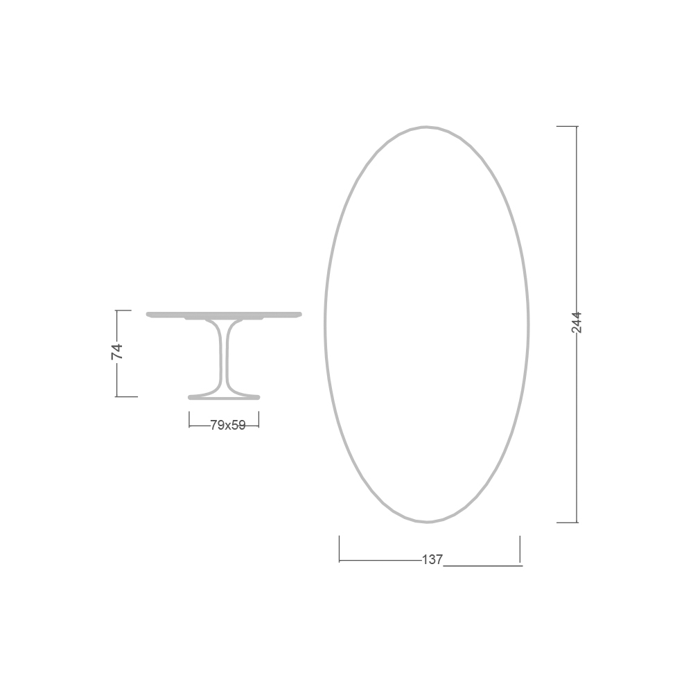 - Tablero: 244 x 137 / Base oval: 79 x 59 cm x H 73 cm