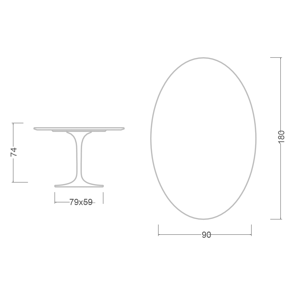 - Tablero de mesa: 180 x 105 / Base ovalada: 79 x 59 cm x H 73 cm
