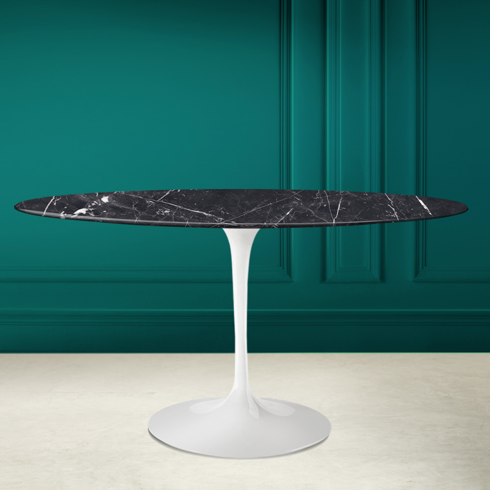 Mesa de comedor ovalada con sobre de cerámica marquinia y base de aluminio pulido Made in Italy