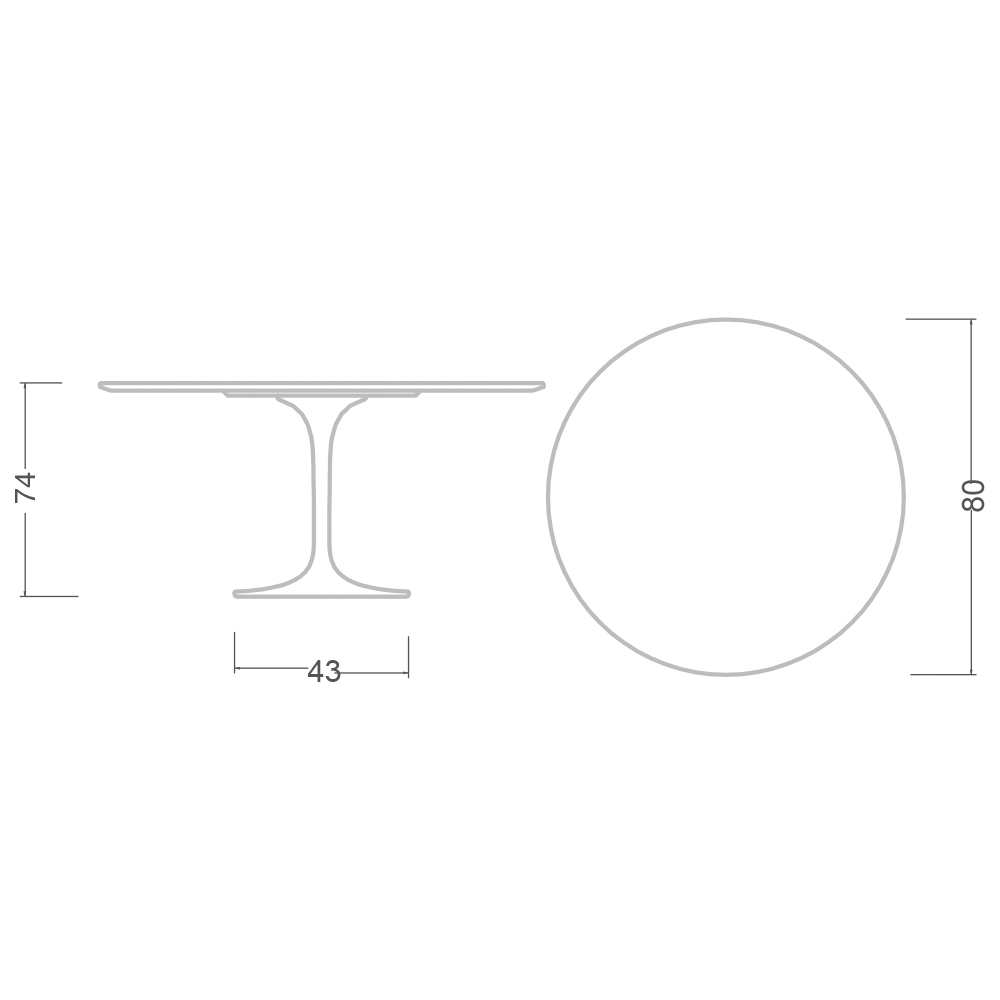 - Diámetro del tablero 80 x altura 74 cm;
