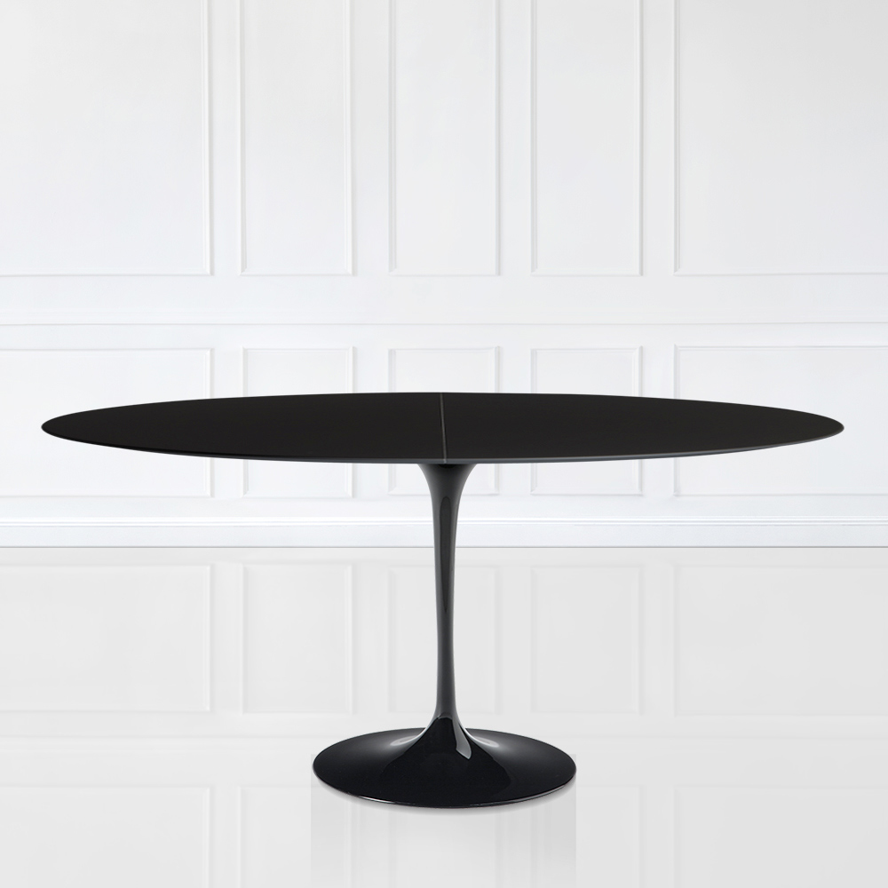 Mesa de comedor extensible hasta 240 cm completamente made in Italy con tablero ovalado en laminado líquido negro y base en aluminio pulido negro. La particular forma ovalada y los acabados sencillos y lineales hacen de este elemento un accesorio de decoración perfecto para insertar en cualquier salón y cocina para hacerla moderna y original . Es perfecto para invitar a los huéspedes gracias a la posibilidad de ser ampliado y la forma de la base que permite la inserción de varias sillas sin dejar de ser elegante e innovador . Los materiales utilizados para la construcción confieren a esta mesa calidad y resistencia incluso con el paso del tiempo convirtiéndola en un elemento perfecto para todos los eventos y ocasiones de uso.