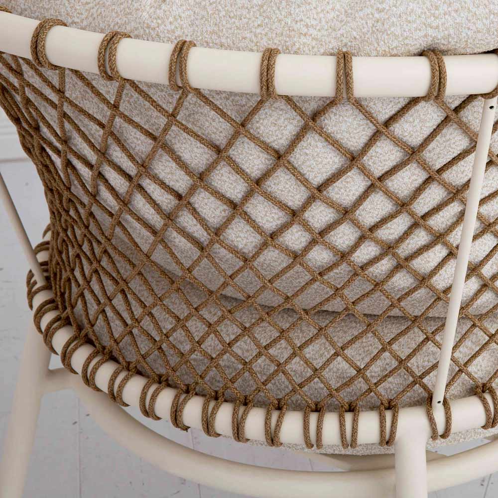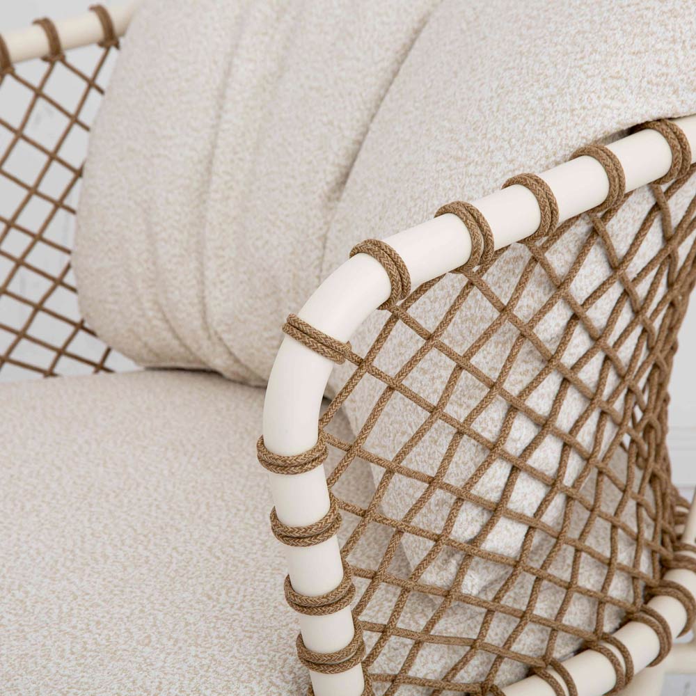 El diseño tejido con cuerda sintética crea un efecto visual fascinante y cautivador, perfecto para añadir un toque de estilo a tu jardín o terraza. Los suaves cojines, acolchados y cubiertos de tejido , garantizan una relajación total y un confort superior, ideal para tus momentos de pausa o para recibir a tus invitados con estilo.