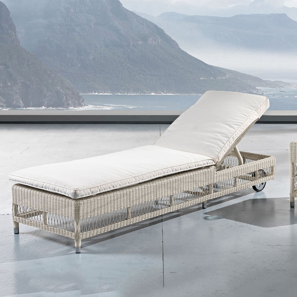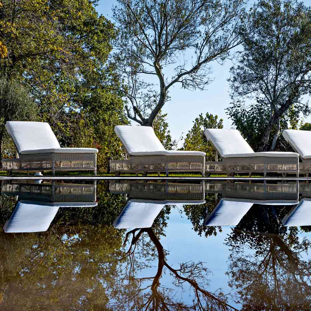 El estilo de tejido es refinado y delicado y junto con la altísima calidad de los materiales y sus formas decididas hacen que esta tumbona sea perfecta para amueblar interiores y exteriores, tanto ambientes privados como contract como terrazas, porches, jardines pero también encuentran una ubicación perfecta junto a la piscina.