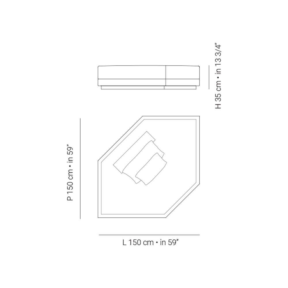 Chaise longue de exterior de esquina con estructura central en tejido Made in Italy