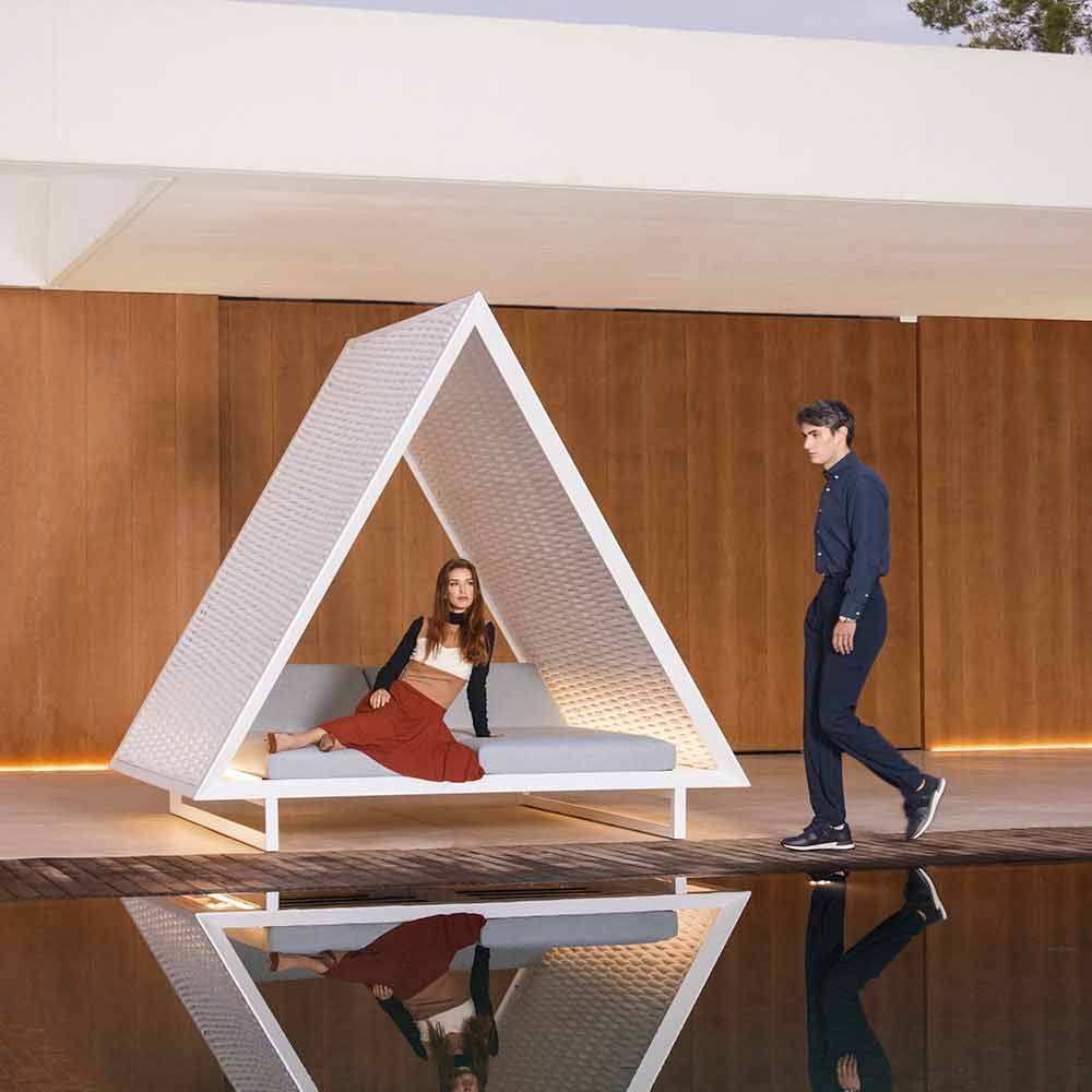 Las líneas puras y simples lo hacen refinado e ideal para el descanso y la relajación en cualquier ambiente, interior o exterior.