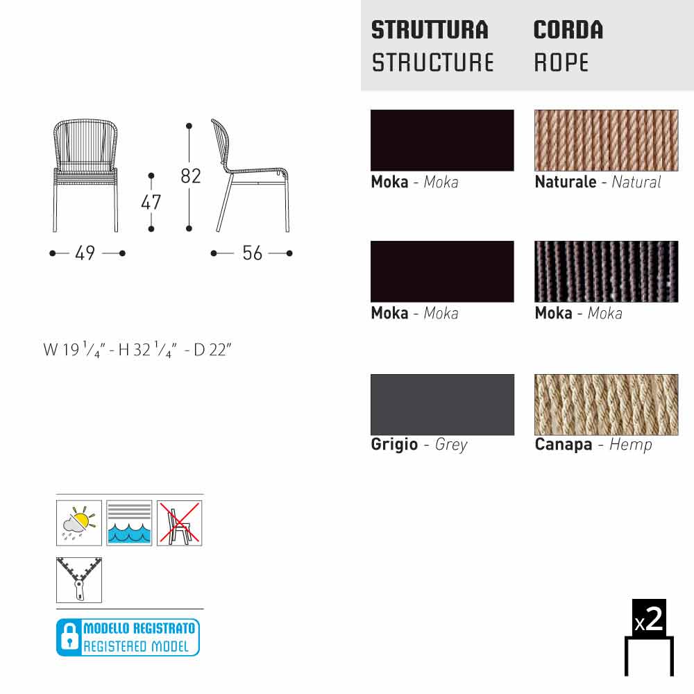Varaschin Cricket silla al aire libre moderna tejida a mano, 2 piezas