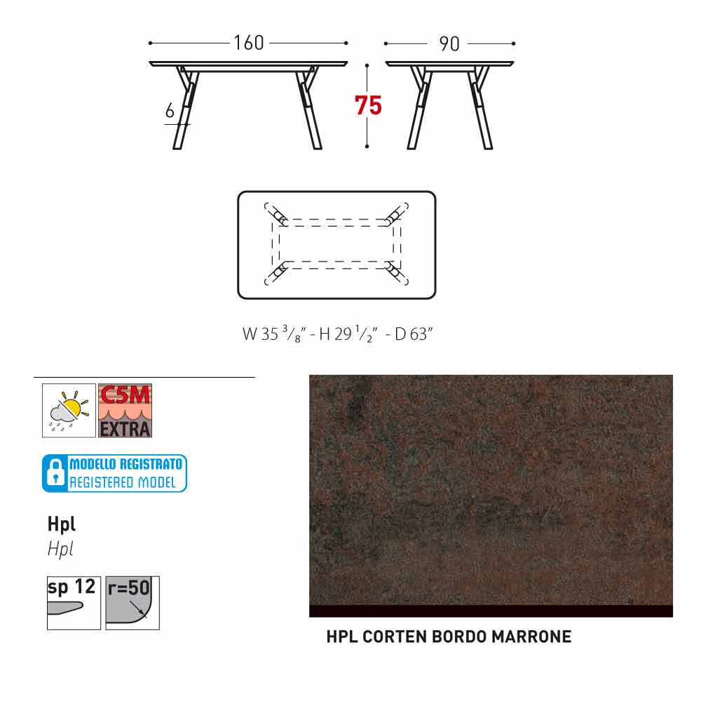 Características: HPL laminados de alta presión. Se componen de varias capas de papel (70%) impregnado con resinas termoendurecibles (30%), y se compacta a través de la acción combinada del calor (alrededor de 150 grados) y alta presión (superior a 7 MPa) durante aproximadamente 45-50 minutos. El resultado es una densidad estable, no reactivo, no poroso y de alta, con características físicas y químicas de alta resistencia mecánica (controlado excursión térmica 80; -40 grados, en tiempo limitado de menos de 30 segundos a temperaturas extremas), la exposición a la luz y la exposición a los cambios de temperatura, incluso en ambientes marinos.