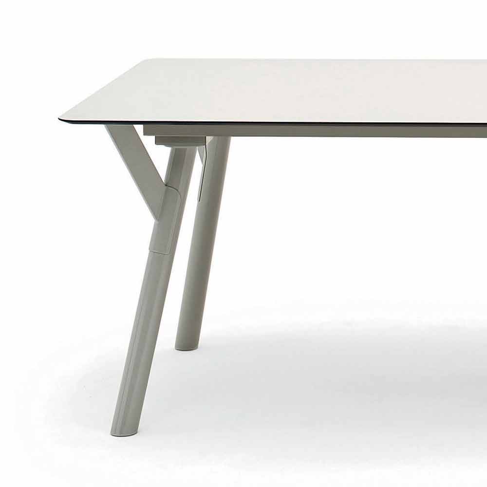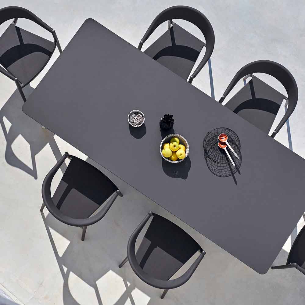 Link es una tabla con un diseño moderno y la estructura (soporte + piernas) de acero inoxidable recubierto. El plan está disponible en HPL (espesor 12 mm) o de madera de teca (espesor 30 mm). Con su diseño versátil, que se puede utilizar como mesa al aire libre para amueblar ambientes interiores. diferentes acabados están disponibles con la que de personalizar marco, las piernas y la parte superior de mesa.