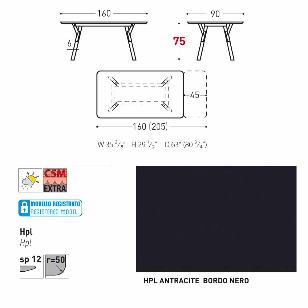 90x160 / 205x H 75 cm - 1 de extensión 45 cm