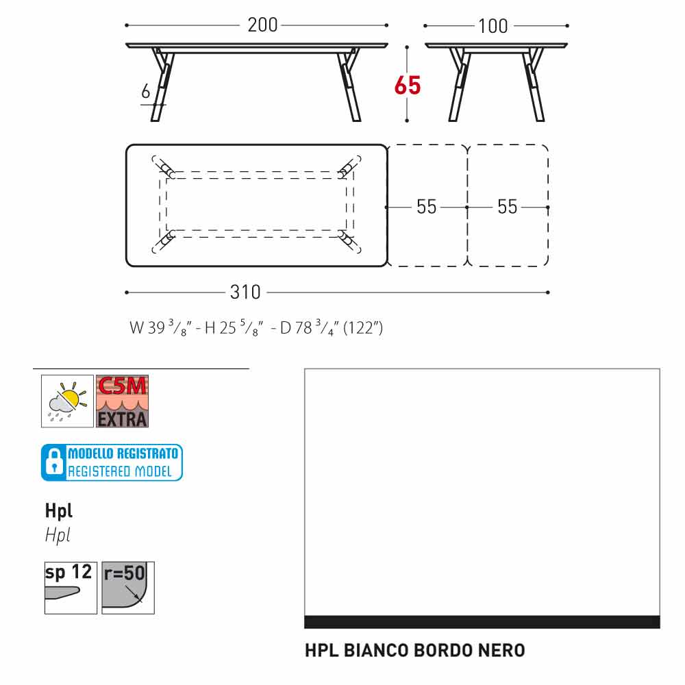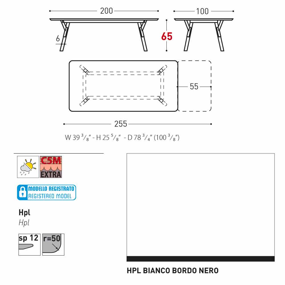 Características: HPL laminados de alta presión. Se componen de varias capas de papel (70%) impregnado con resinas termoendurecibles (30%), y se compacta a través de la acción combinada del calor (alrededor de 150 grados) y alta presión (superior a 7 MPa) durante aproximadamente 45-50 minutos. El resultado es una densidad estable, no reactivo, no poroso y de alta, con características físicas y químicas de alta resistencia mecánica (controlado excursión térmica 80; -40 grados, en tiempo limitado de menos de 30 segundos a temperaturas extremas), la exposición a la luz y la exposición a los cambios de temperatura, incluso en ambientes marinos.