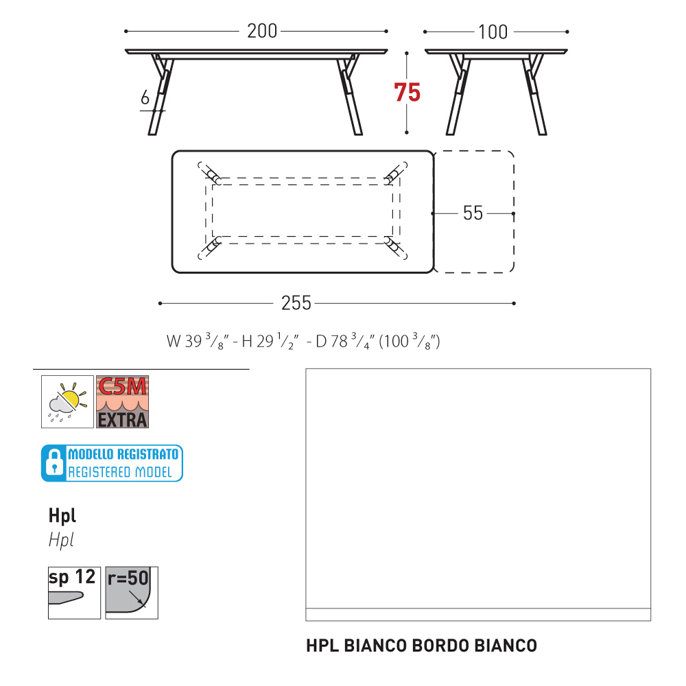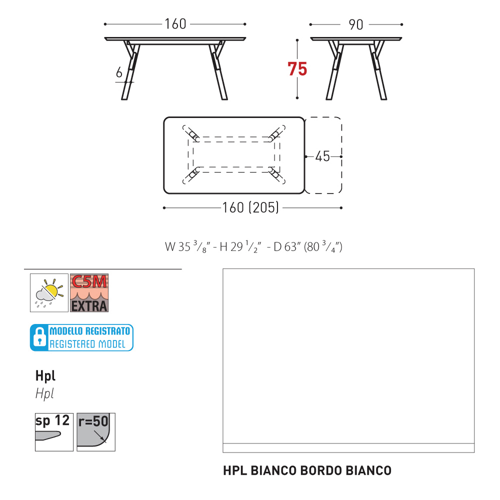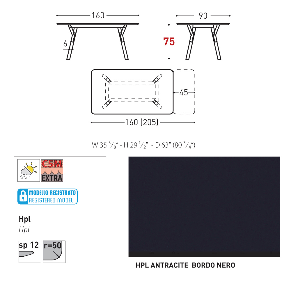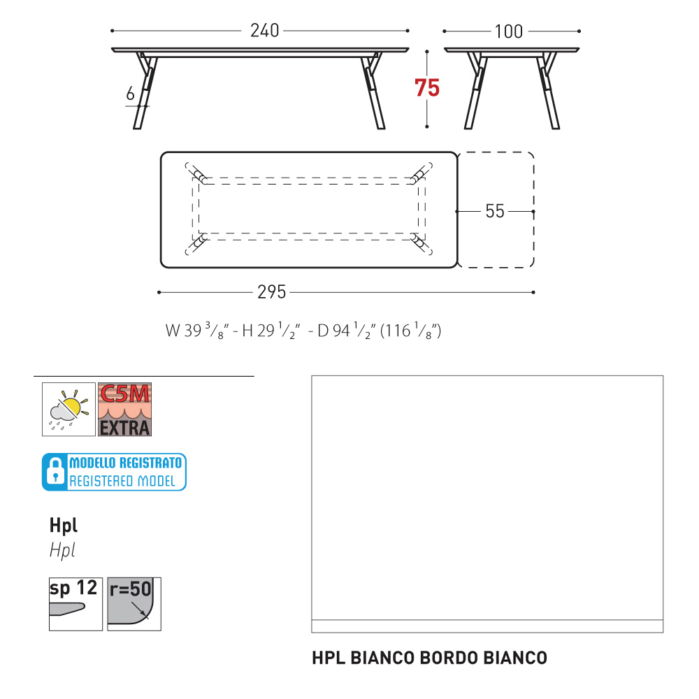Características HPL: laminados de alta presión. Se componen de numerosas capas de papel (70%) impregnadas de resinas termoendurecibles (30%) y compactadas por la acción combinada de calor (unos 150 grados) y alta presión (superior a 7Mpa) durante unos 45-50 minutos. El resultado es un producto estable, no reactivo, no poroso y de alta densidad, con características físicas y químicas de alta resistencia mecánica (rango de temperatura controlada +80; -40 grados, en un tiempo limitado de menos de 30 segundos en condiciones extremas). temperaturas), la exposición a la luz y la exposición a los cambios de temperatura, incluso en ambientes marinos.