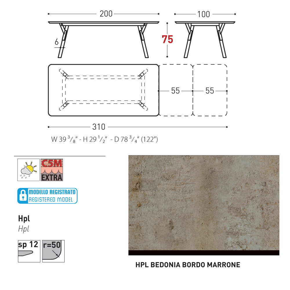 100x200/310xH73,2 cm - 2 extensiones de 55 cm cada una