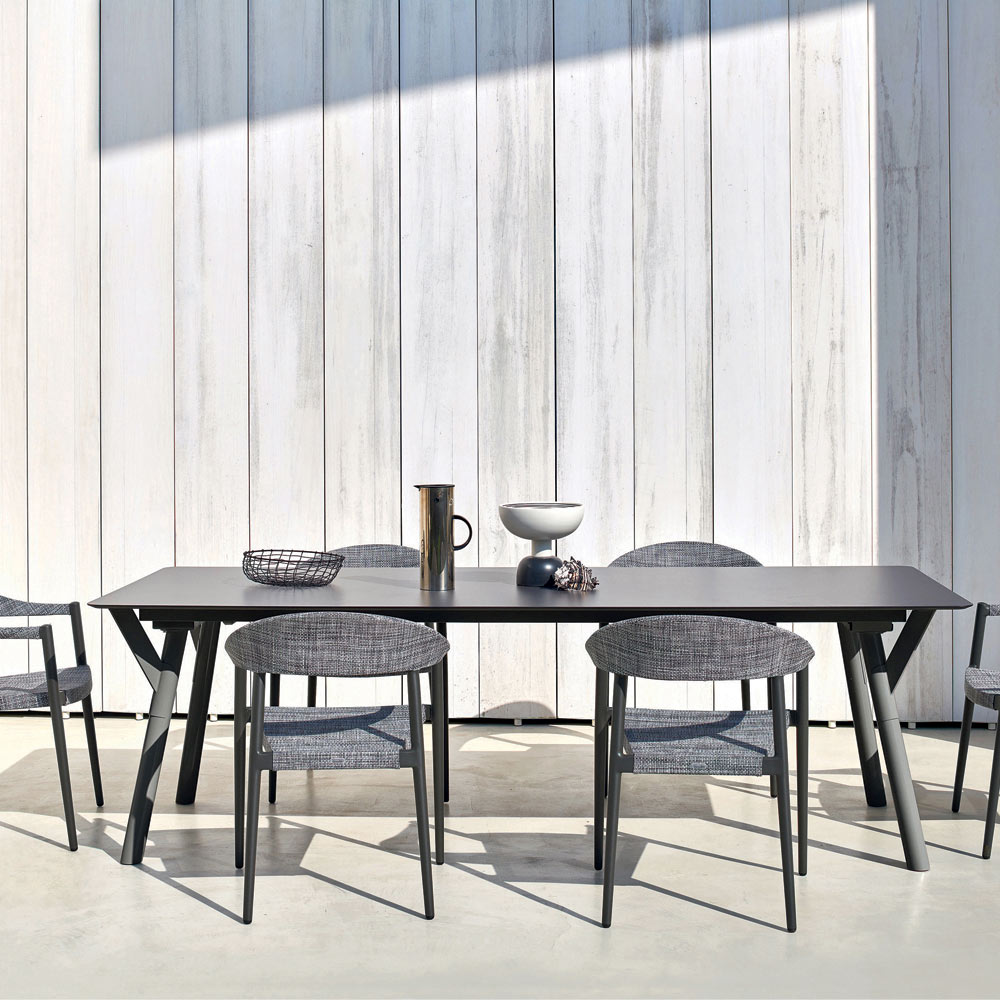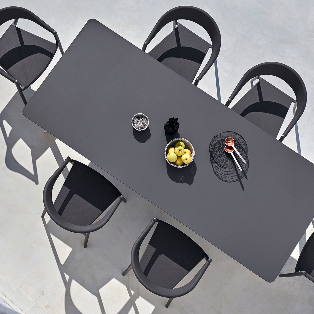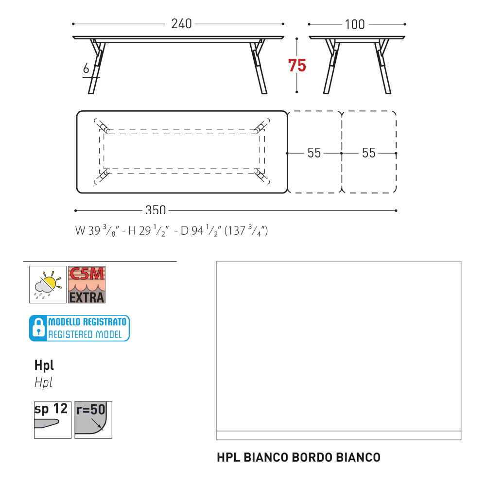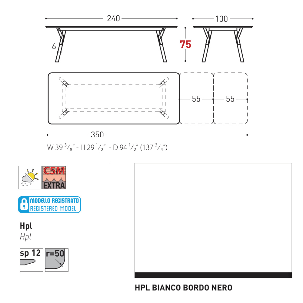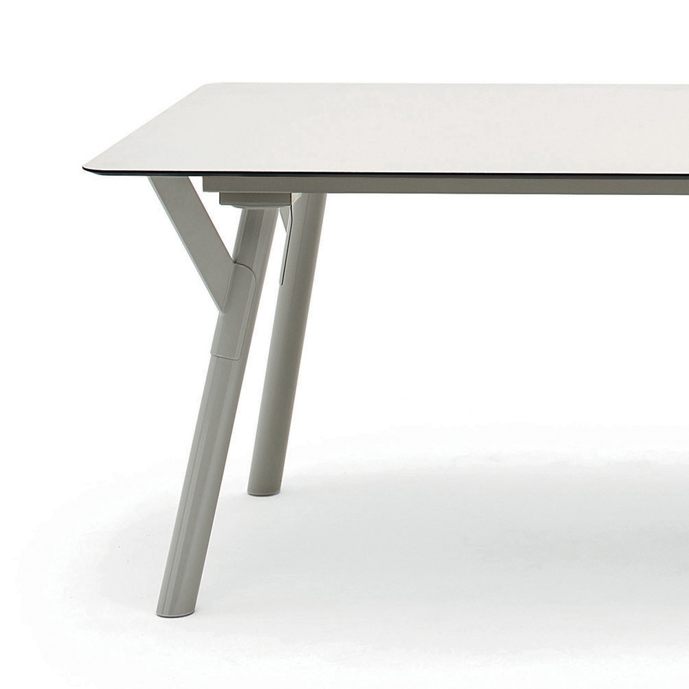 Link es una mesa de diseño moderno con estructura (soporte + patas) en acero inoxidable pintado. La tapa está disponible en HPL (espesor 12 mm) o en madera de teca (espesor 30 mm). Gracias a su diseño versátil, se puede utilizar tanto como mesa extensible de exterior como para amueblar ambientes interiores. Se encuentran disponibles diferentes acabados con los que personalizar la estructura, las patas y el tablero.