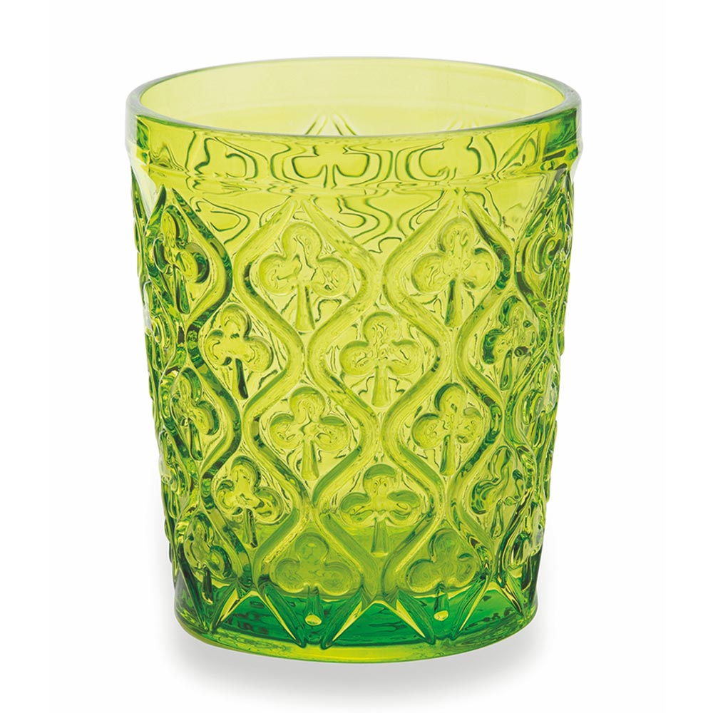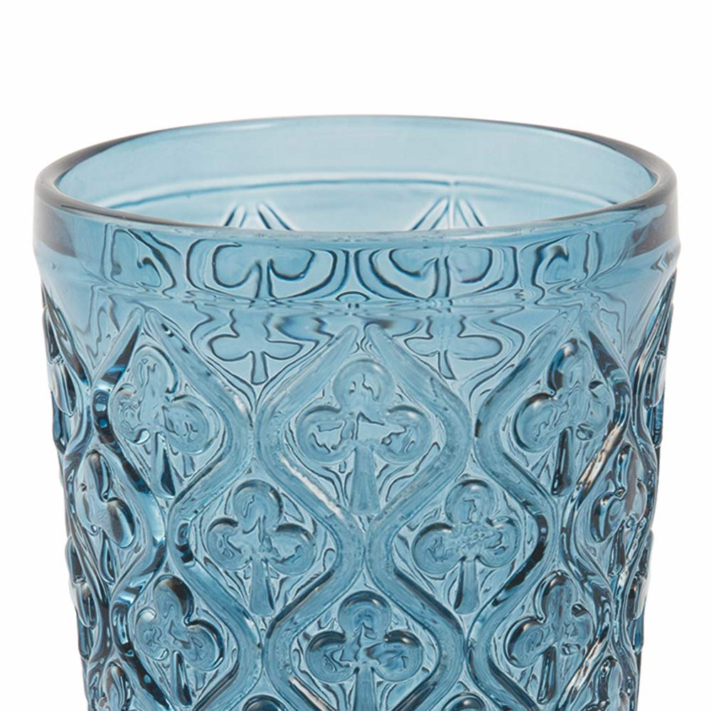 Vasos de agua en vidrio coloreado y decoración arabesca, 12 piezas.