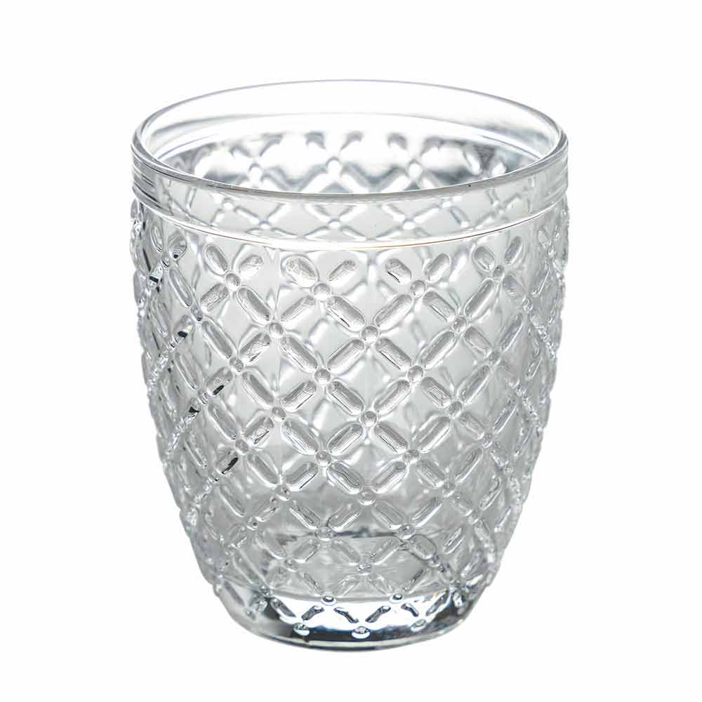Juego de vasos de agua transparentes de colores en vidrio con adornos tallados, 12 piezas.