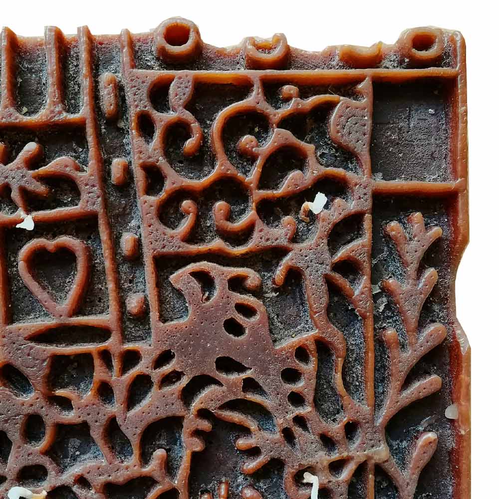 Tacna es una vela rectangular con un diseño étnico fabricada en cera marrón con aroma a canela ideal para crear ambientes relajantes en las diferentes estancias de la casa como el salón, recibidor o dormitorio.