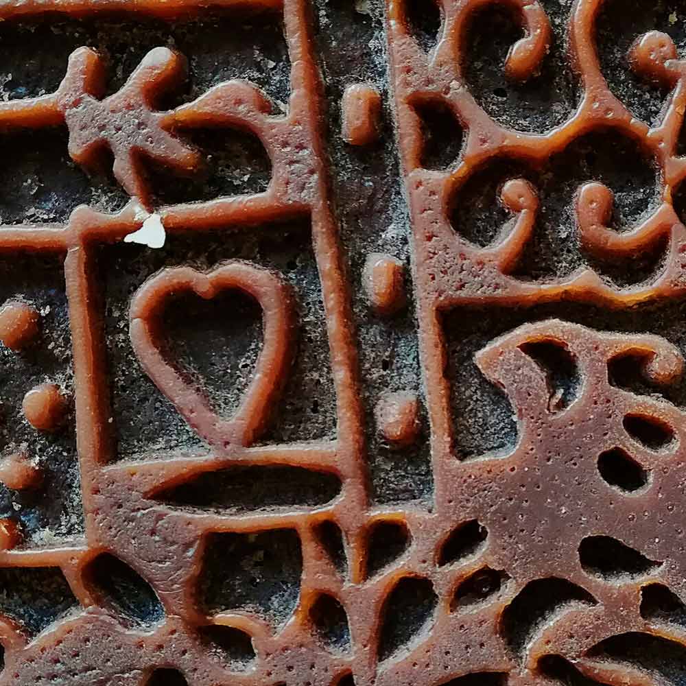 Vela artesanal con diseño étnico en cera marrón perfumada con canela Made in Italy.