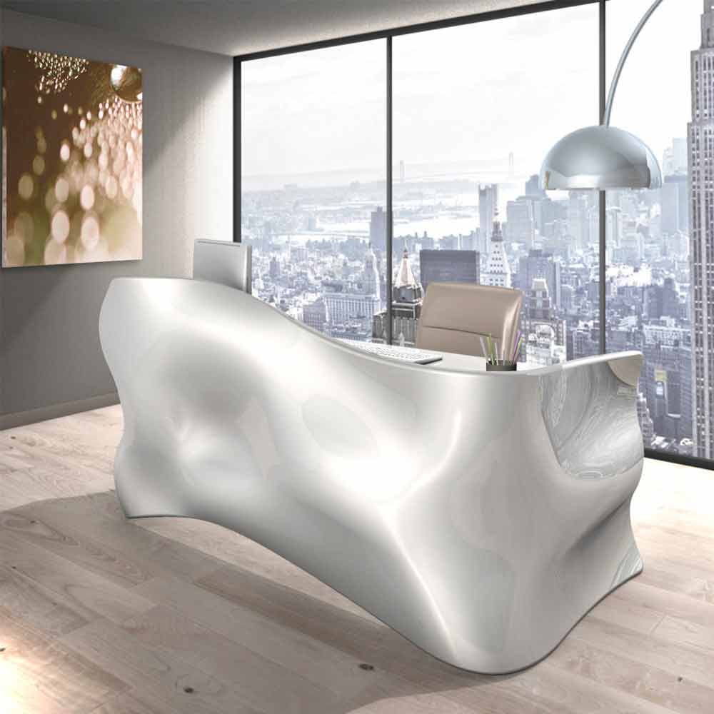 El escritorio "Velo" fue diseñado para combinar funcionalidad y un fuerte impacto estético. Se caracteriza por un diseño de líneas orgánicas y sinuosas, casi como un suave velo, que pliega y envuelve el espacio circundante. Su forma escultural es tal que puede insertarse tanto en ambientes modernos y minimalistas como en estancias lujosas del más alto nivel. Escritorio caracterizado por Solid Surface, disponible en tres variantes de color: Blanco (RAL9003), Negro (RAL9005), Gris Paloma (RAL1019), ¡elija el que mejor se adapte a usted!