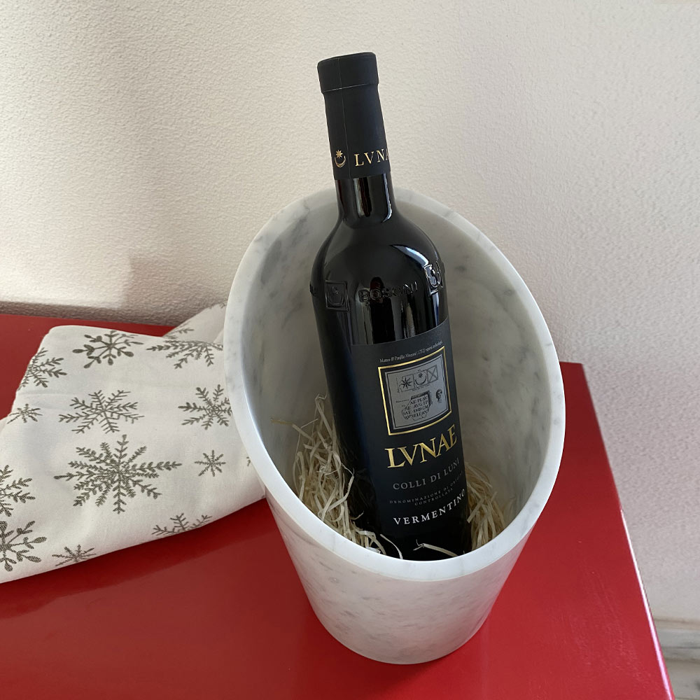 Glacette moderno para vino o champán fabricado en mármol blanco de Carrara Marquinia Made in Italy.