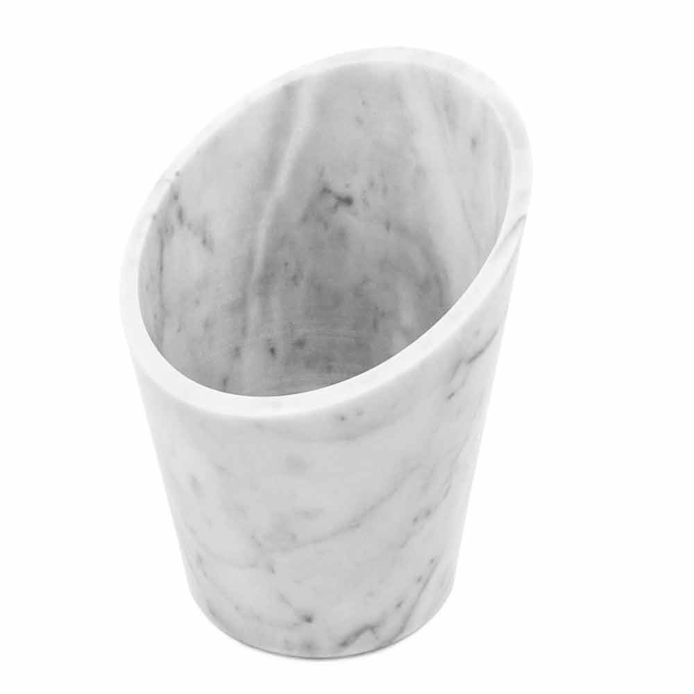 Glacette elegante con un diseño refinado de mármol blanco de Carrara . Es una pieza única ya que cada bloque de mármol utilizado se diferencia de los demás por vetas y matices.
