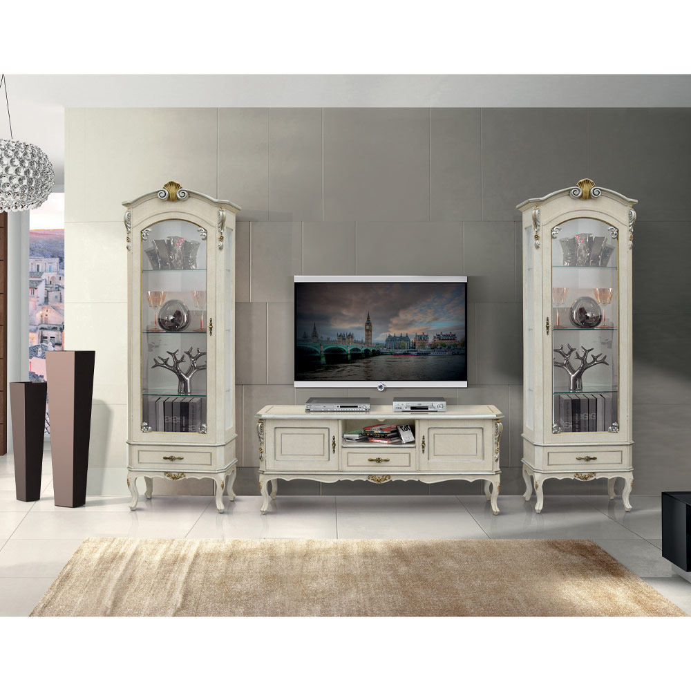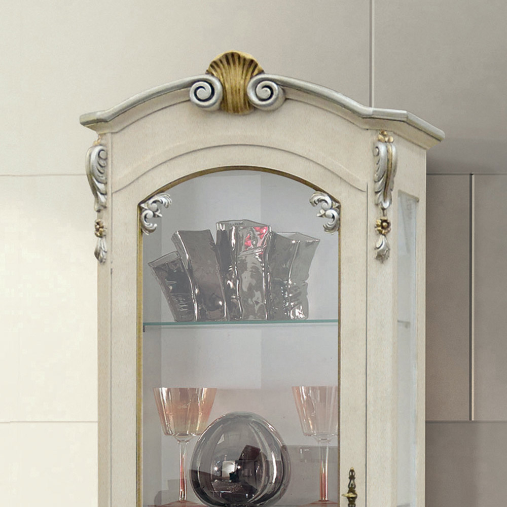 Vitrina clásica con puerta y cajón en madera blanca Made in Italy.