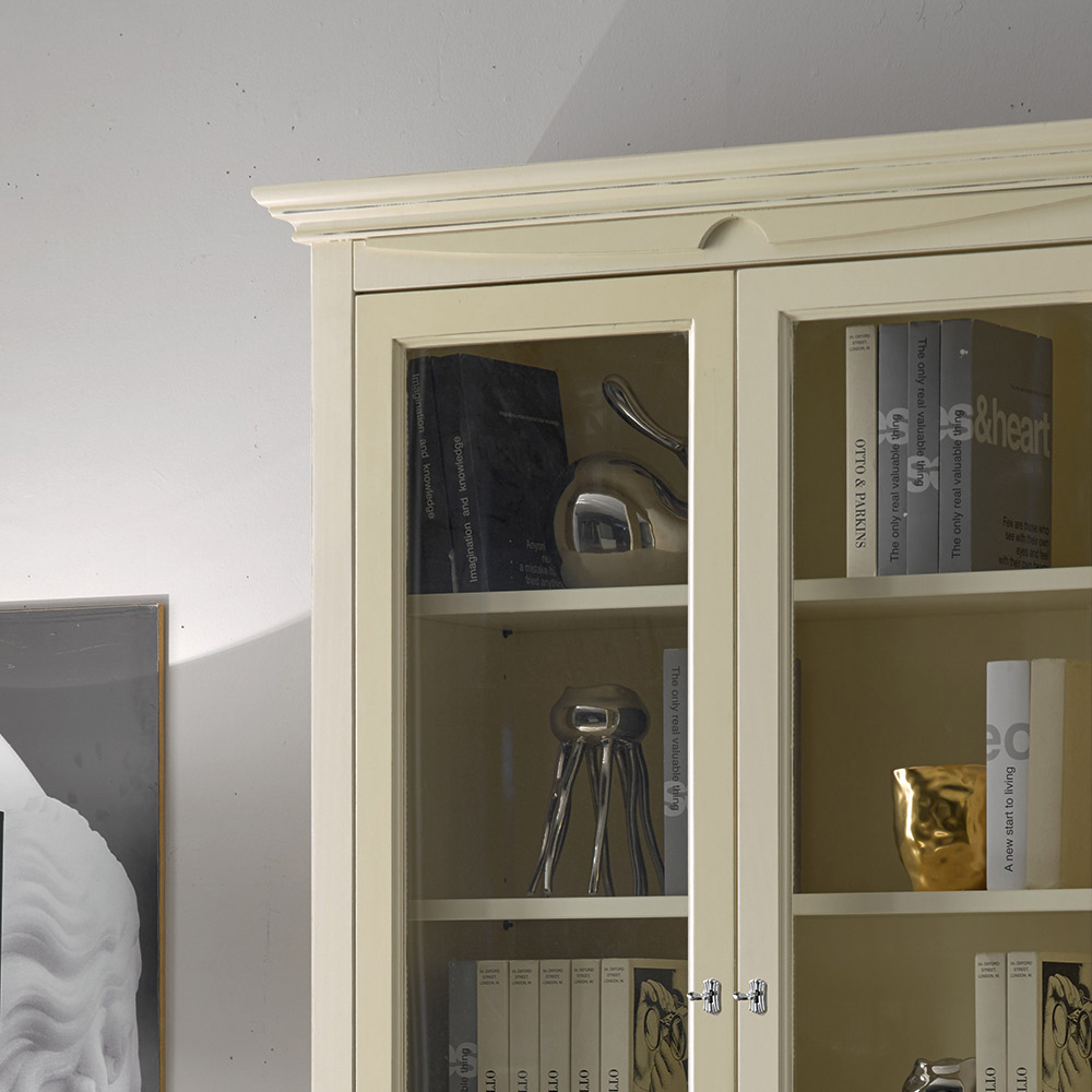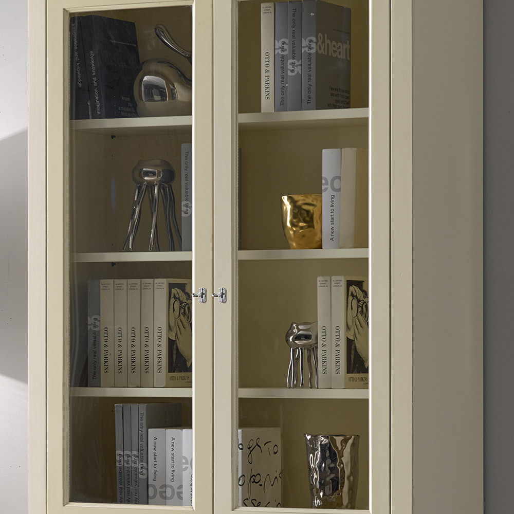 Vitrina con estructura de MDF , marcos toulipier , paneles de partículas de madera contrachapada Tanganica con 2 puertas de cristal y 2 puertas de madera totalmente Made in Italy.