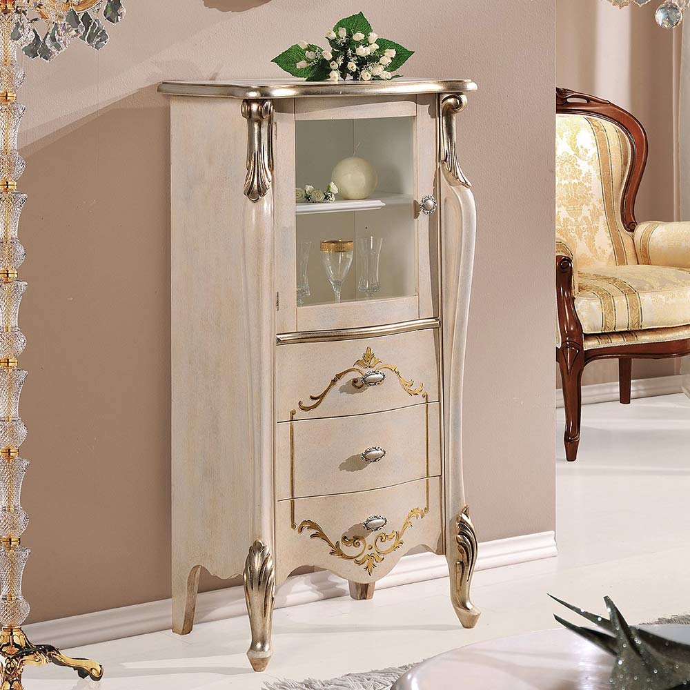 Vitrina de salón con puerta de cristal y 3 cajones Made in Italy.