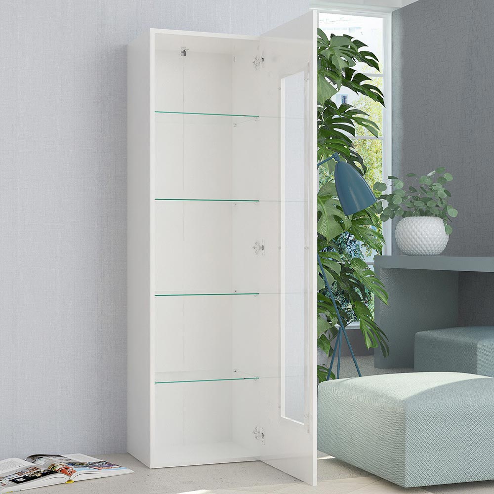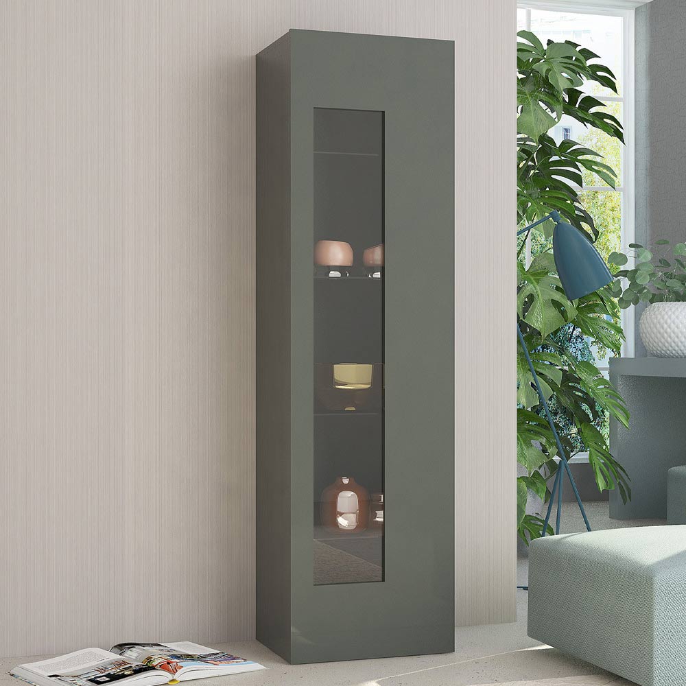 Aparador con vitrina de madera en varios acabados, diseño de salón made in Italy.