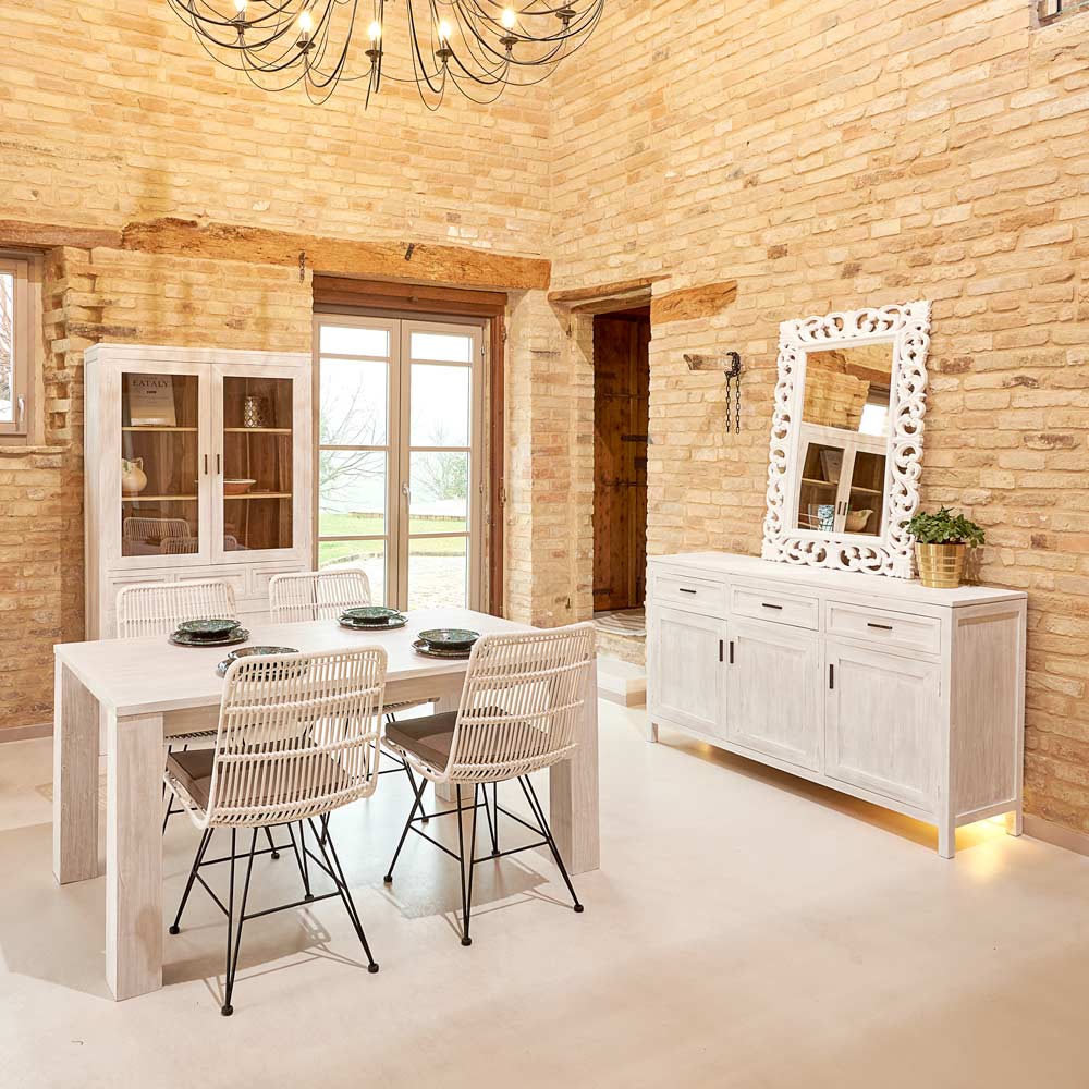También son normales ligeras irregularidades, como pequeñas desalineaciones en las puertas, ligeras curvaturas, marcas superficiales, rellenos o tacos, especialmente al utilizar madera recuperada. Las medidas son aproximadas y pueden variar ligeramente, al igual que algunos detalles ornamentales y estilísticos.