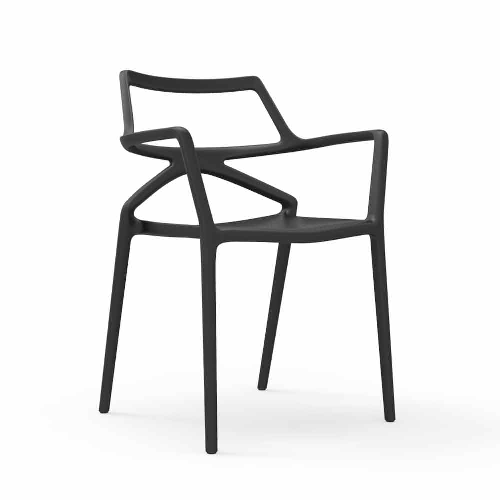 Silla con reposabrazos Delta by Vondom de polipropileno inyectado moldeado con aire y reforzado con fibra de vidrio. Apilable.