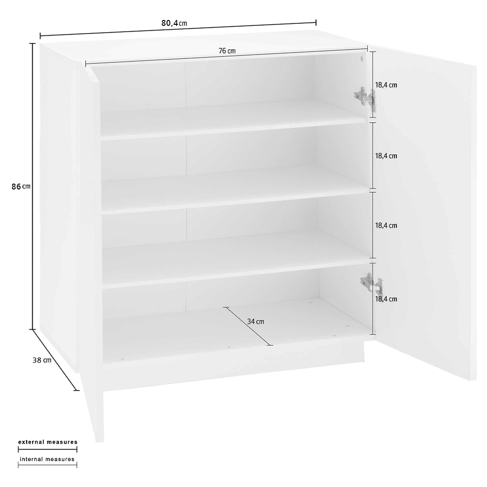 Zapatero en madera de melamina sostenible con 2 puertas y 2 acabados, made in Italy.